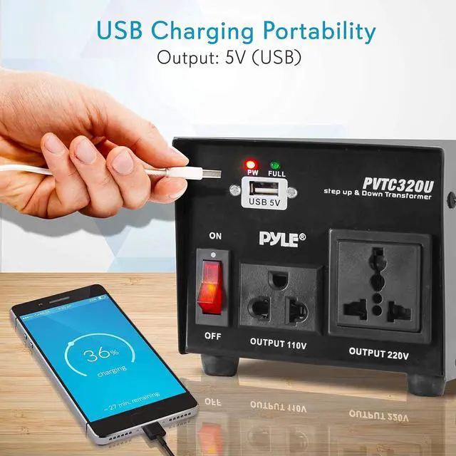 Pyle Step Up and Down Converter - 500 Watt Voltage Converter Transformer w/ USB Charging Port UK Power Adapter AC 110 / 120 to 220 / 240 Volt Vice Versa 110V/120V/220V/240V Input Voltage