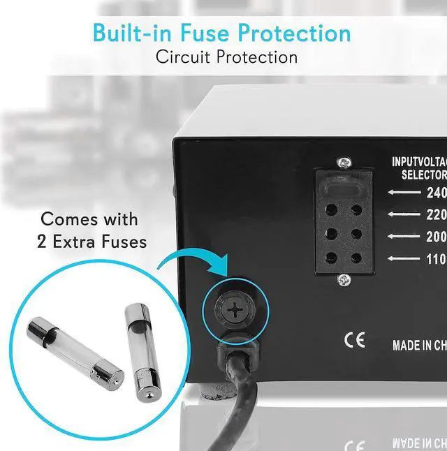 Step Up: 110/117/120V AC to 220/230/240V AC - Dimensions: 7 Inch L x 7 Inch W x 5 Inch HOr Step down from: 220/230/240V AC to 110/117/120V ACSafety break switch to Power On and electrical shock protection