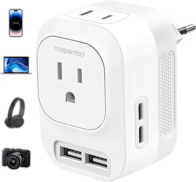 (NOTE: Not work in UK/ Ireland/ Scotland)6-IN-1 INTERNATIONAL TRAVEL ADAPTER: The universal travel adapter is equipped with 2 AC outlets 2 USB ports and 2 USB C ports (USB ports combined output is 5V/ 3.5A ) which can support charging of 6 devices at the same timeNEWLY