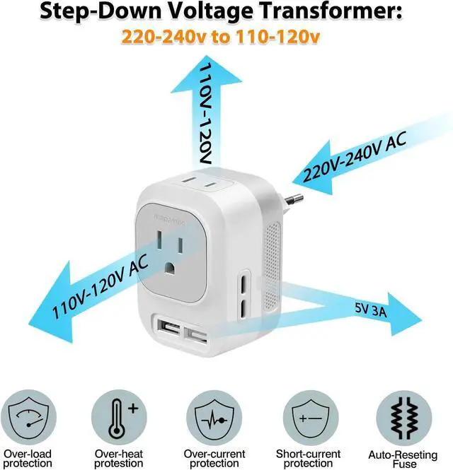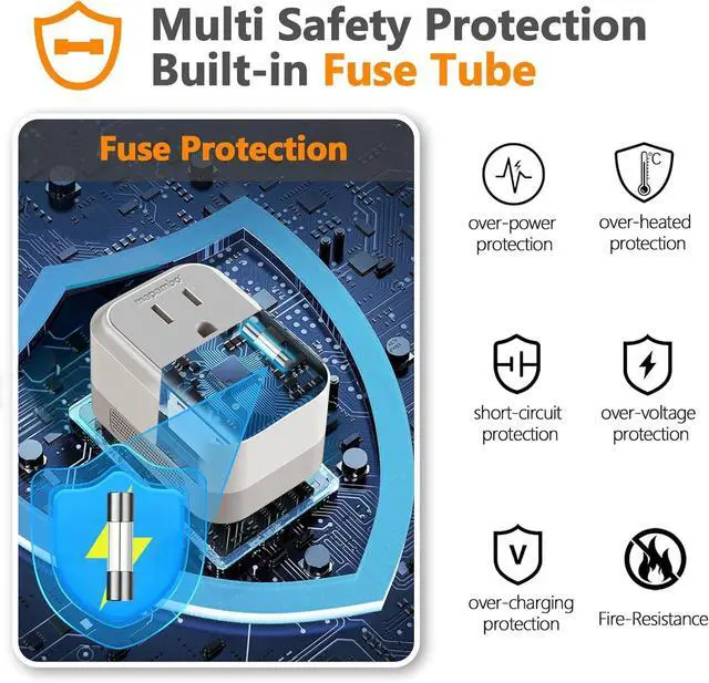 Quiet: The Power Converter Adapter Combo Automatically Detects Risks and Shuts Off the Power to Protect Against Overheating Overcurrent Overcharging Overtemperature or Short Circuits Ensuring Your Safety. It Operates Silently Allowing You to Enjoy an Undisturbed Sleep. (Not suitable for electric toothbrushes electric shavers curling irons hair straighteners irons electric drills etc.