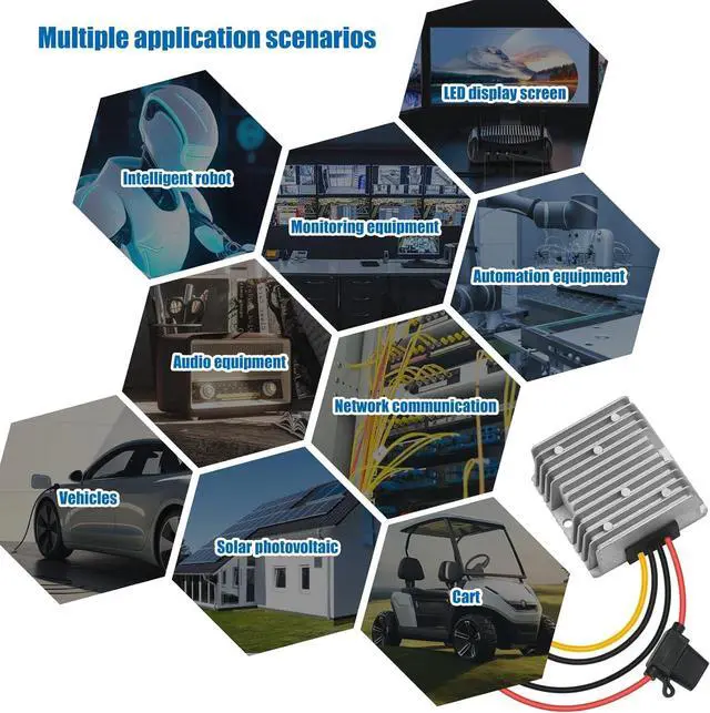 Perfectly adapted to: golf carts / solar energy storage / AGV robots / marine powerThe waterproof transformer adopts non-isolated synchronous step-down technology the transformer will not heat up when it is working which is safer. The transformer is dustproof waterproof and vibration-resistant because it is potted. 1 year warranty + lifetime technical support customer service 7 X 24 hours online service