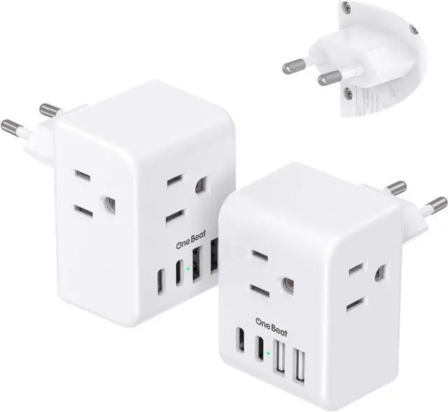 7 in 1 EU Power Adapter- The European travel plug adapter turns 1 European Type C outlet into 3 standard American outlets 2 USB-A and 2 USB-C charging port Max Capacity Up to 2500 Watt (max 250 Volt 10 A); 4 USB Ports can charge up to 3.1A allowing you charge 6 devices simultaneously. ideal for cell phone tablet power bank and other electrical chargers; No need to carry extra adapter and power strip for your traveling a small US to Europe plug adapter can save your suitcase spaceUS to Europe Travel Plug Adapter- Our italy travel plug adapter compatible with most European countries such as Austria Belgium Croatia Denmark Finland France Germany Spain Turkey Iceland Italy Israel.