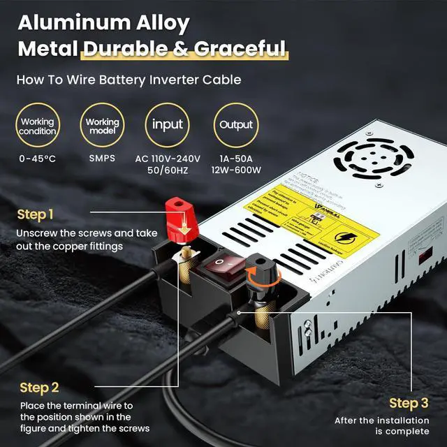 Dual Voltage Auto-Adjustment: This 110V ac to 12V dc converter supports dual input of AC 110V/220V with intelligent automatic switchingno manual adjustment needed. Delivers stable 12V DC output with power ranging from 12W to 600W. Output current adapts automatically to device requirements (e. g. 10A/120W 20A/240W 30A/360W) supporting up to 50A/600W high-current output.