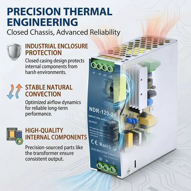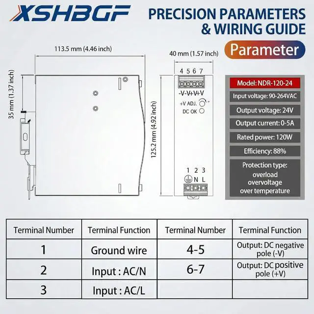 24VDC Power Supply NDR 120W DIN Rail Power Supply Switch Switching Converter DC (Input 100-240VAC Output 24VDC 50/60HZ 24V 5A)