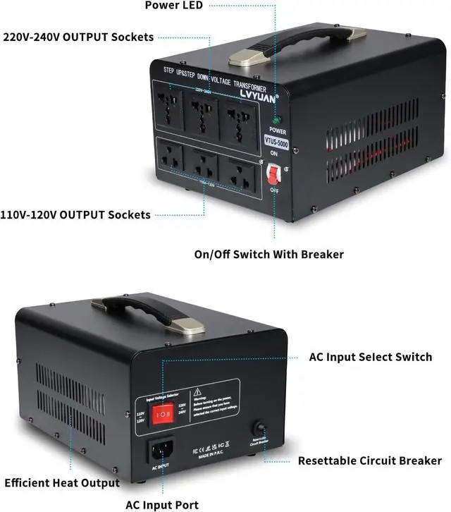 MULTI-FUNCTION: The Voltage Converter Transformer can be used with any kind of appliance or device up to 5000 watts.