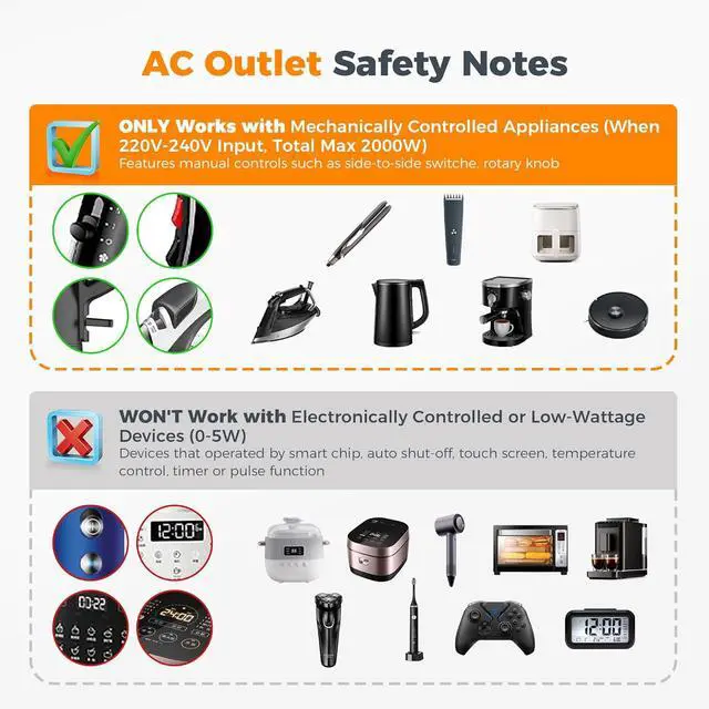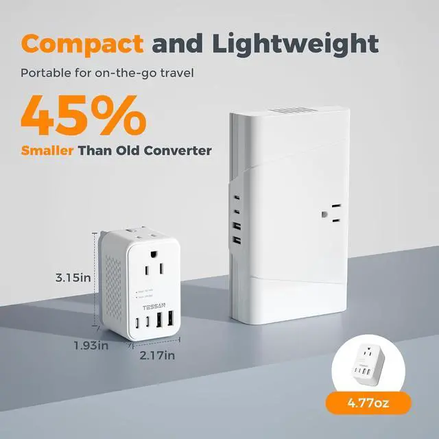 Safe Design: This voltage converter for European travel with a lightweight and portable size( 3.15 * 1.93 * 2.17 in) provides overload overcurrent and short-circuit protections. The European voltage converter operates silently without disturbanceNote: AC outlets of the voltage converter 220 to 110 are designed for simple mechanical motors but are not suitable for low-wattage devices (05W) such as electric shavers or toothbrushes. Before use ensure that you check safety instructions for devices