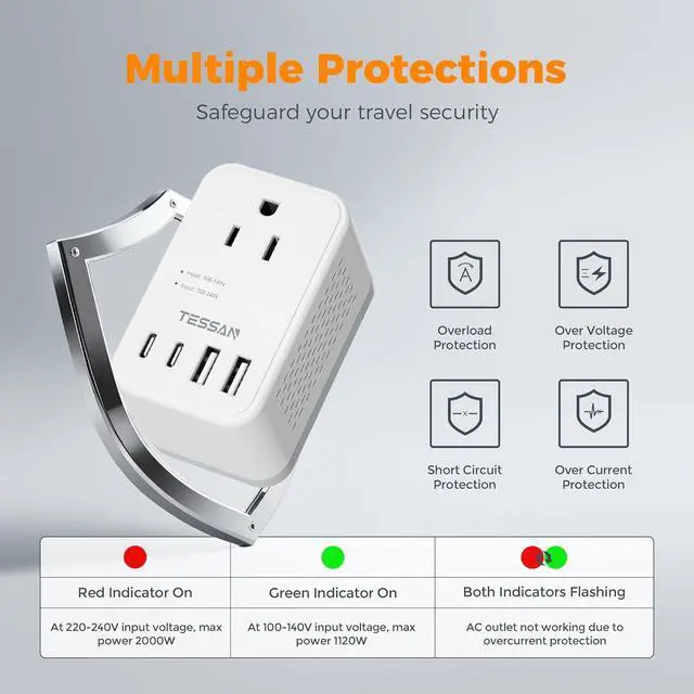 Travel Voltage Converter: The power converter for Europe is equipped with 1 power cable and 3 international adapters (Type C G I). This adapter plug converter works in Europe Italy Spain Iceland Portugal Greece UK Ireland Australia New ZealandDifferent Conversion Modes: When AC outlets is in converter status red light on it can automatically converts voltage 220V-240V (50/60Hz) to 110V (60Hz) 2000W Max; When AC outlets is in adapter status green light on the output is 100-140V 1120W Max6 in 1 Travel