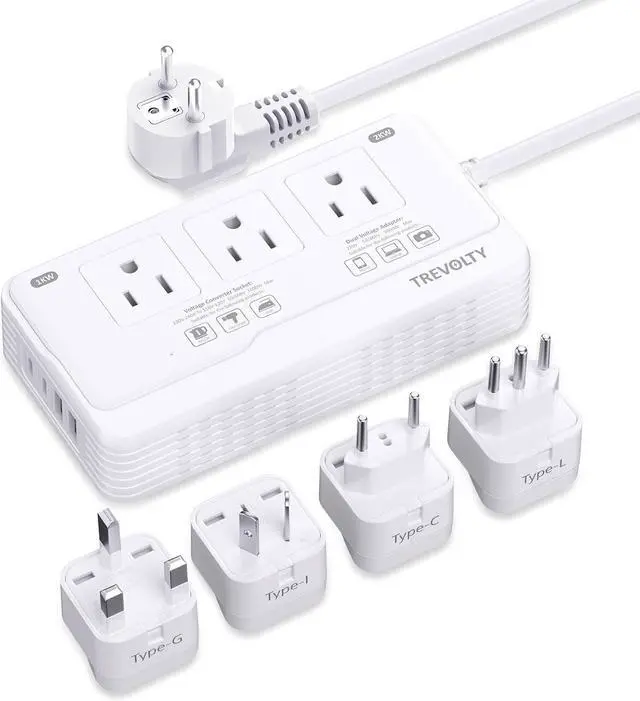 The Ultimate Upgrade for 220V to 110V Converter - The travel converter could power your 110V appliances (up to 1000W) hair dryers electric kettles irons and morein 220V countries. The voltage converter us to europe features next-gen safety tech and ultra-efficient performance for travel. 2000W 7-in-1 Universal Travel Adapter - The power converter adapter combo features 3 AC Outlets (AC1/AC2 support 1000W voltage conversion AC3 handles 2000W for high-power devices) + 4 USB Ports (2 USB-A + 2 USB-C 5V/ 3.5A Total 17.5W ). The converter for european travel power 7 devices simultaneouslyideal for phones tablets and more.