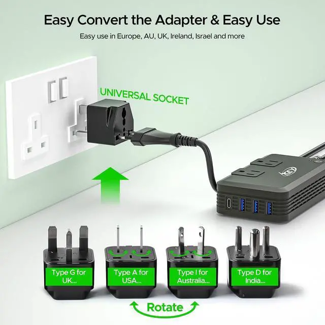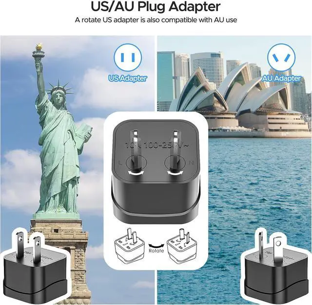 Worldwide Use: Equipped with a Type C AC power cord (4Ft) and 3 different adapters for UK US AU IN EU (Type C). Converts voltage from 100-240V to US voltage 110V allowing American electronics to be used in various countries including Gibraltar Grenada Hong Kong and more.