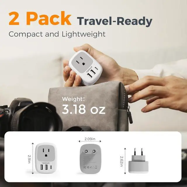 USB Adapter Plug: The USB A port charges up to 2.4A per port the USB C port charges up to 3A max; 2 types of USB ports can detect charged devices and give you more charging options; ideal for charging your cell phone tablet laptops camera earphone etcCompact
