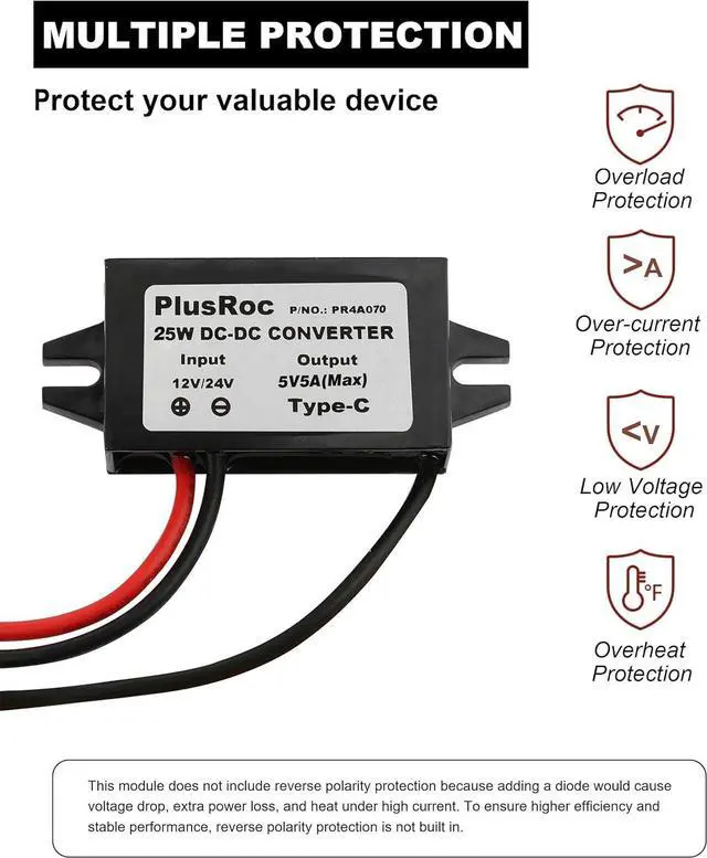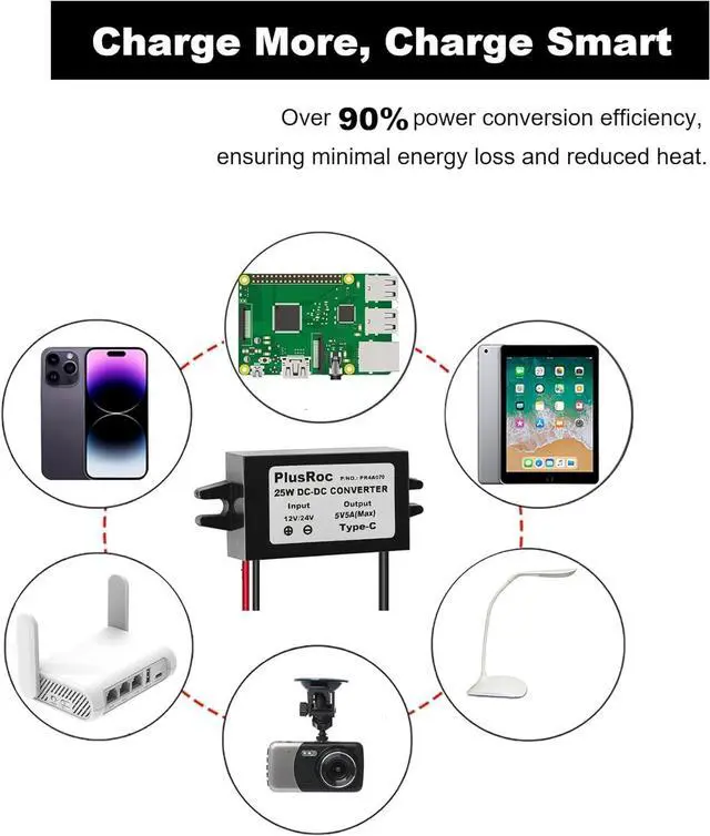 Efficient Performance: More than 90% power conversion efficiency ensures minimal energy loss and reduced heat. With overload/over-current/overheat/low voltage protection offers reliable protection to your connected devices. Maintains a steady 5V outputwithin ±2% toleranceeven at full 5A load fully compatible with Raspberry Pi 5/Pi 4 smartphones tablets and other 5V devices.
