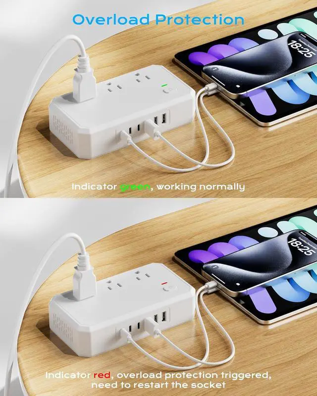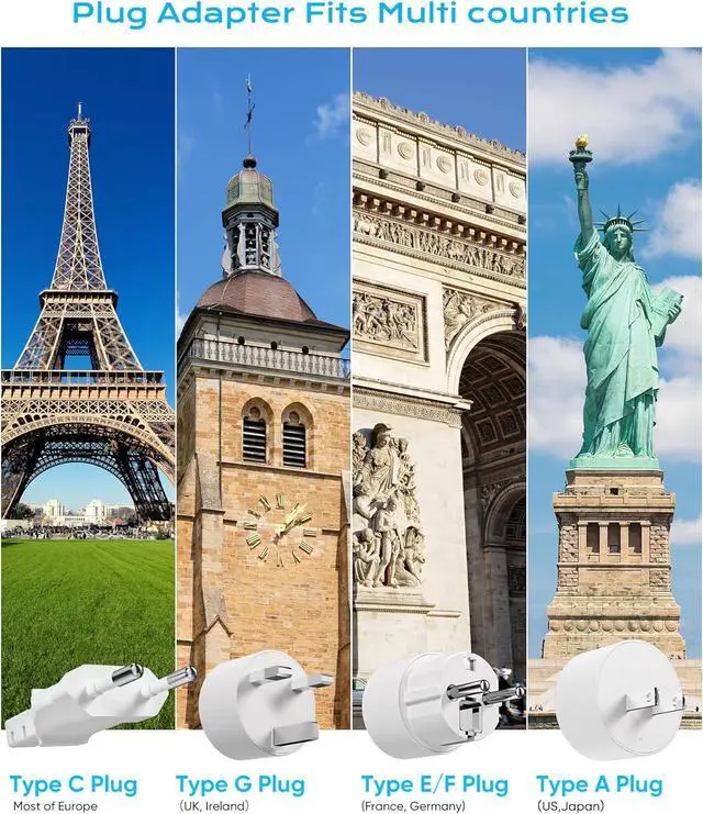 Voltage Converter: This equipment has patented technology which can convert 220V to 110V in Europe and is suitable for equipment with power below 250WOverload protection: When the socket indicator is red it indicates that the total power of the appliance exceeds 250W. Please reduce the device in use and press the power button again. When the indicator is green the power strip can work normallyIncludes 4 types of international adapters - EU (Type C) UK (Type G) Germany/France (Type E/F) US (Type B) plugs compatible with most of the world5ft Extension Cord can be cleverly wrapped around the bottom of the power strip. Easy to store compact size ( 4.36 * 2.41 * 1.93 inches) lightweight portable to carry suitable for a business trip and travel