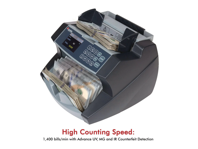 - Advanced and reliable money counting with blazing speed up to 1,400 bills per minute and counterfeit detection for an all-in-one cash processing solution!