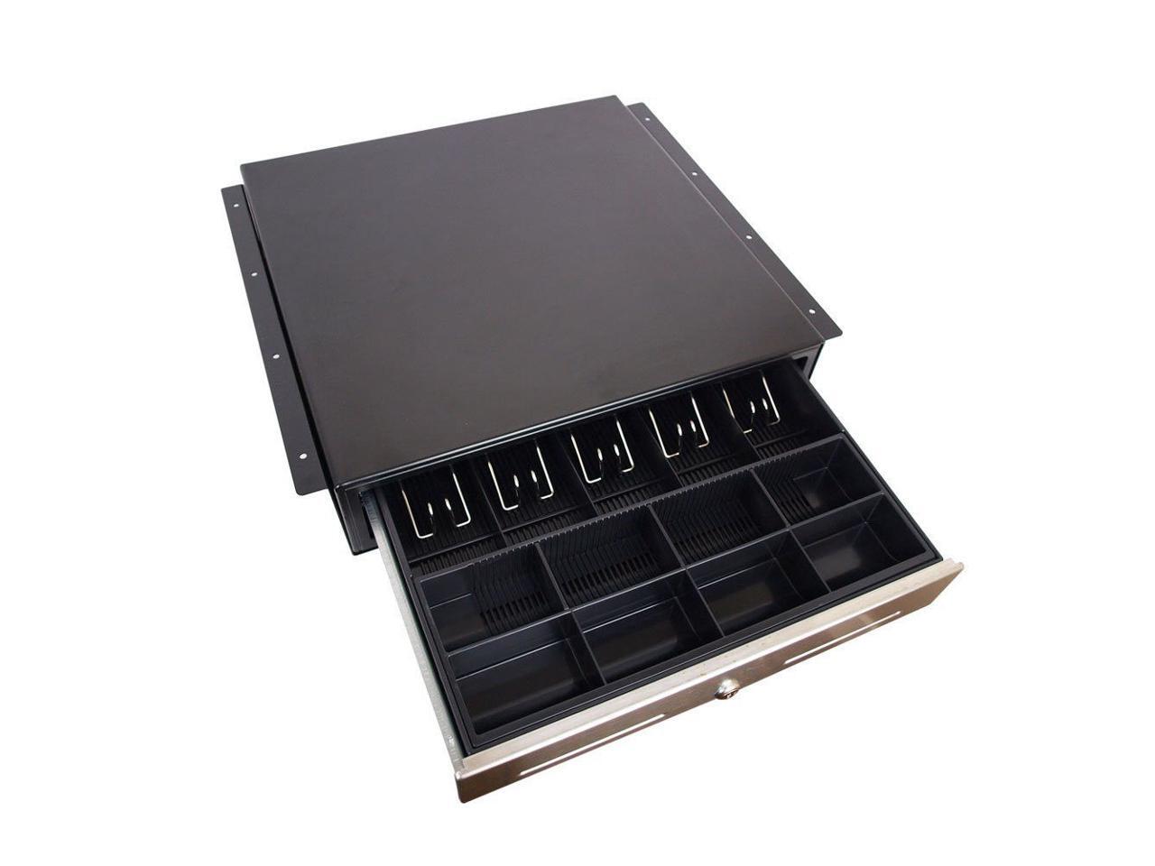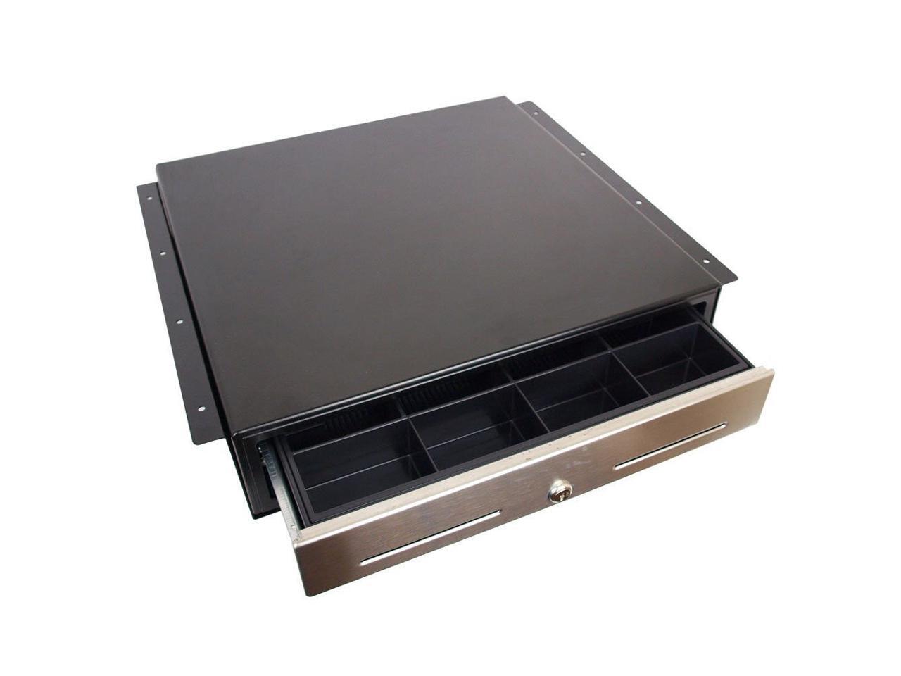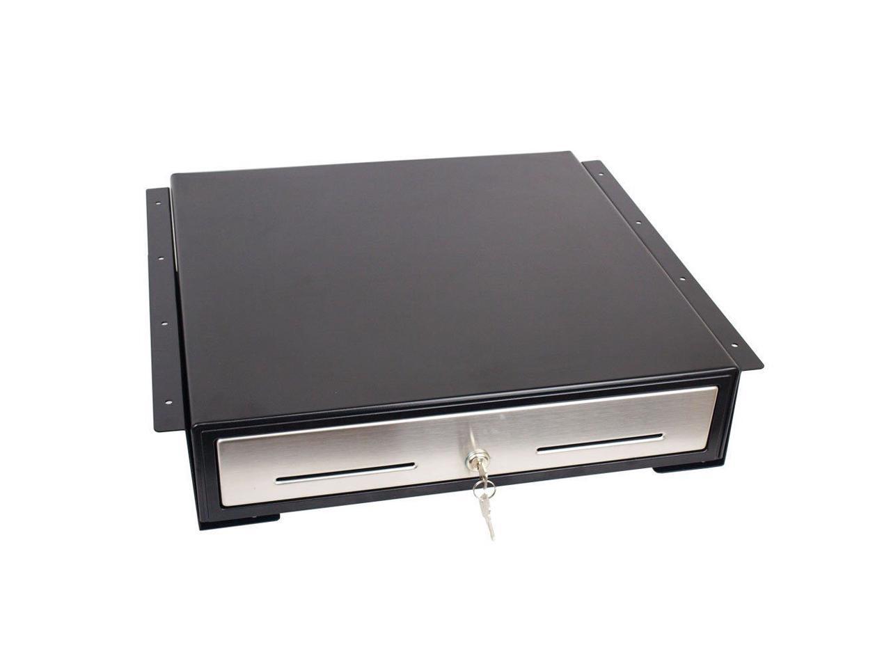 Angel POS Under Counter 18" Point of Sale/POS Cash Drawer with Mounting Bracket/Mount Heavy Duty RJ-12 Key-Lock Cash Register w/Bill & Coin Trays (Black with Stainless Steel Front)