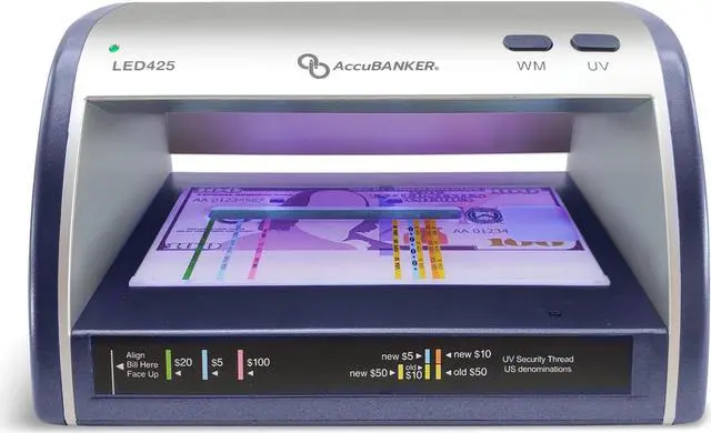The LED425 Counterfeit Bill/Document Validator with Guide is great for banks, bars, gas stations, nightclubs, restaurants, movie theaters, and any other retail spaces that handle cash and documents. It features the most advanced LED technology for long-lasting Super-Bright UV and White LED lights allowing users to validate bills and documents like passports, credit cards, and IDs.