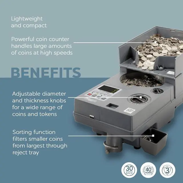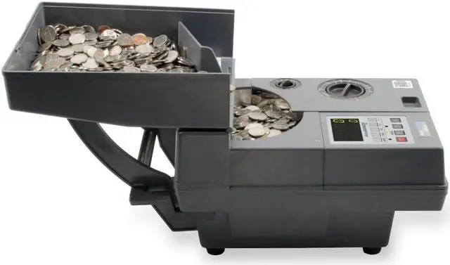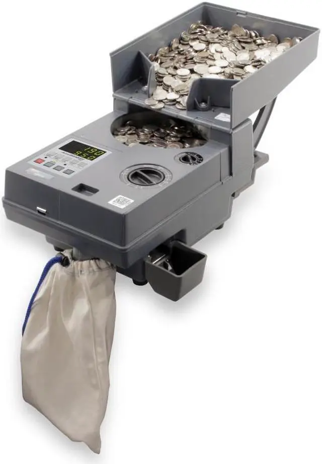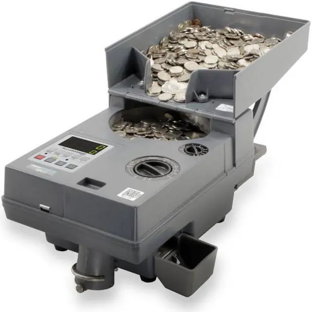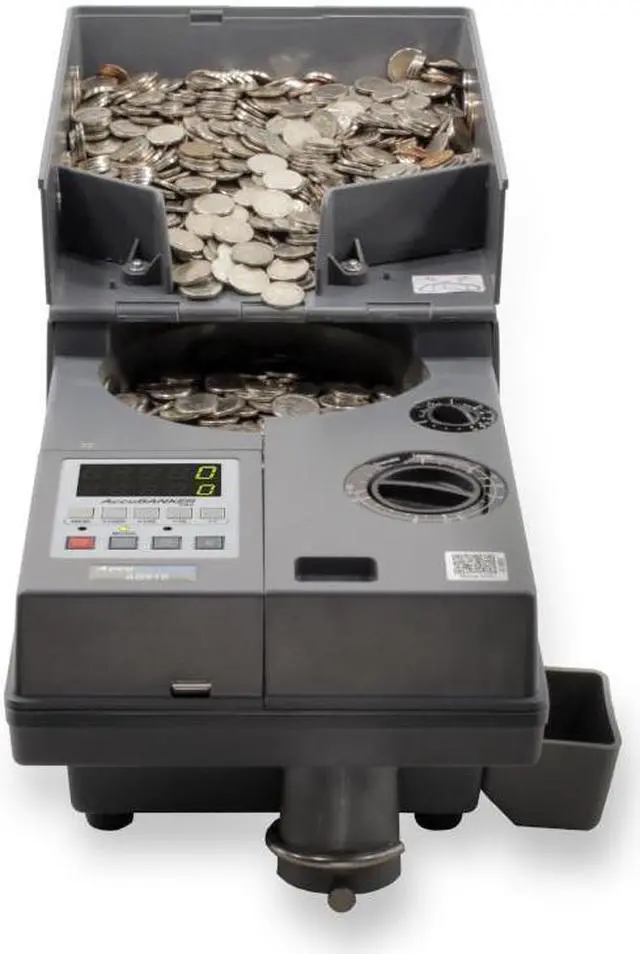 The AB610 Coin Counter quickly and accurately counts coins, tokens, and chips. The AB610 counts upto2, 000coins per minute (based on dimes) and is equipped with an adjustable diameter and thickness setting to accommodate any coin. This sturdy coin counter is built to count large quantities and comes with batching options, an auto-stop function, and anti-jamming function. The external hopper easily folds over to make it compact and easy to store or transport. Easy-to-use, reliable, and with a rugged design, the AB610 is a great option for retail stores, entertainment venues, amusement facilities, coin laundries, gas stations, vending businesses, and many other environments.