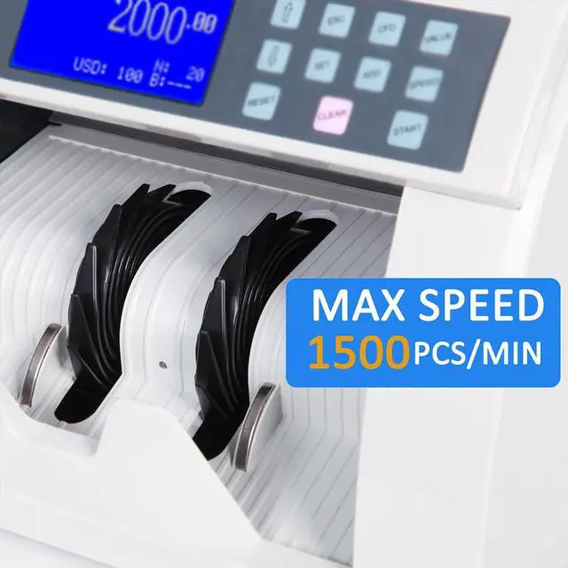 ACCURATE&EFFICIENT&SMOOTH ?: Mature classic mechanical platform design, good adaptability to new or worn banknotes, stable and smooth in counting; Large hopper capacity which can hold about 500 banknotes at a time, improve the counting efficiency; 3 speeds are available, Counts 900/1200/1500 bills/min. The running noise is less than 75db, establish a quiet banknote counting environment ? ? EASY TO OPERATE AND MAINTAIN ?: 3.5 inch segment LCD display, which displays amount, quantity, and error code clearly; The whole passage can be opened from the rear side and the degree of opening is close to 90 degrees, which is convenient for internal cleaning and maintenance. ? ?
