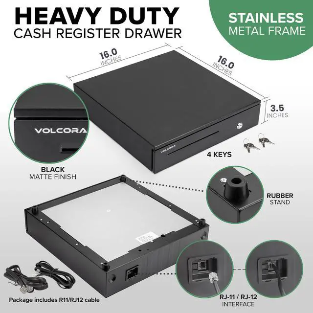 Cash drawers are one of the core components to every Point of Sale System. They may be the simplest part of your POS but making sure you have the right cash drawer is key. Volcora cash drawer model CD-5B is the perfect solution for applications that can be addressed with a heavy duty cash drawer. It is designed for the most rugged environments. It is also the cost effective choice that doesn't sacrifice quality or dependability. Model CD-5B is competitively priced and includes features, such as multifunction locks and drawer status reporting, found in more expensive cash drawers.