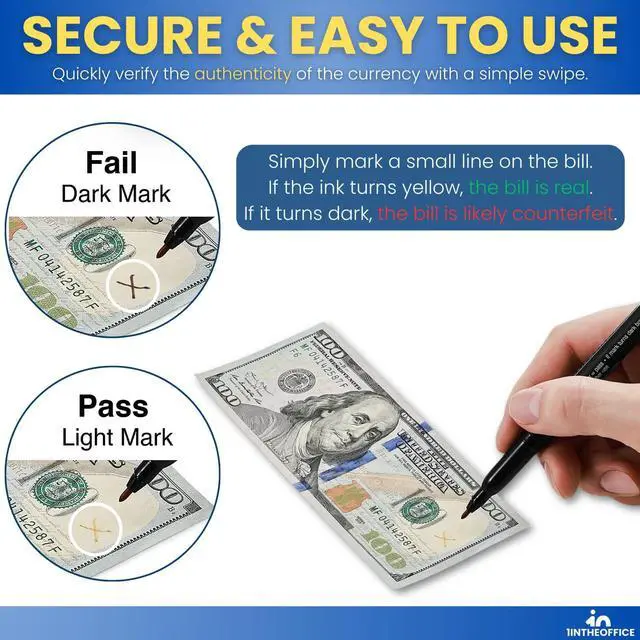 How to use: just easily write on the surface of the money and you can see the results for your 'selves as the color yellow proves that the money is real and if it turns black then it's fake.