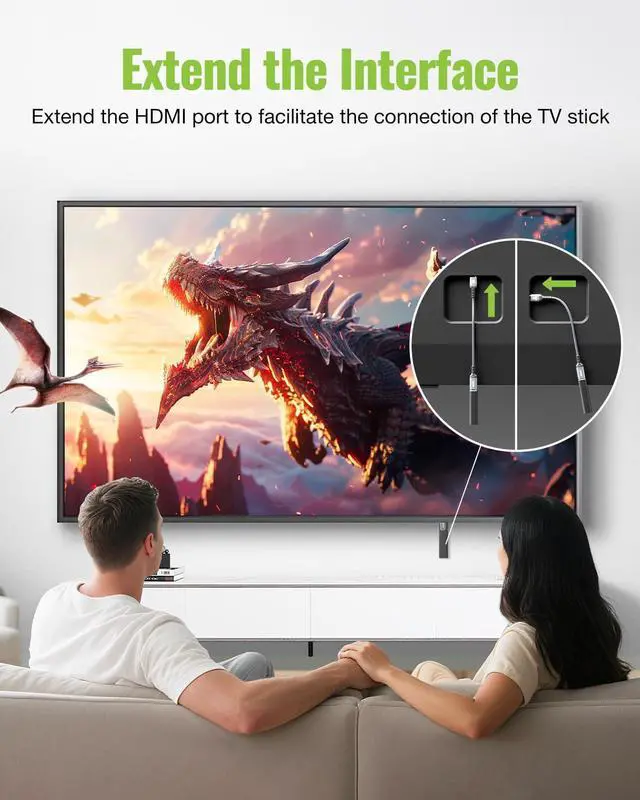 Play: Effortlessly extend hard-to-reach HDMI ports with the 0.3 m hdmi extender. Designed for tight TV back spaces facilitates the connection of streaming sticks and is compatible with mirror and extended modes for various devices