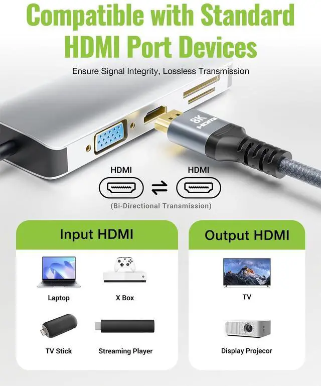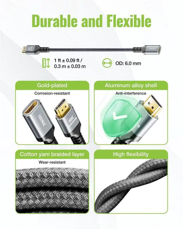 Immersive Audio-Visual Experience: This hdmi extension cable unlocks 8K@60Hz and 4K@120Hz resolution with 48Gbps bandwidth 2.1HDMI integrating Dynamic HDR and VRR to eliminate stutter and tearing along with 3D and Dolby Vision support for a fully immersive experience20000+