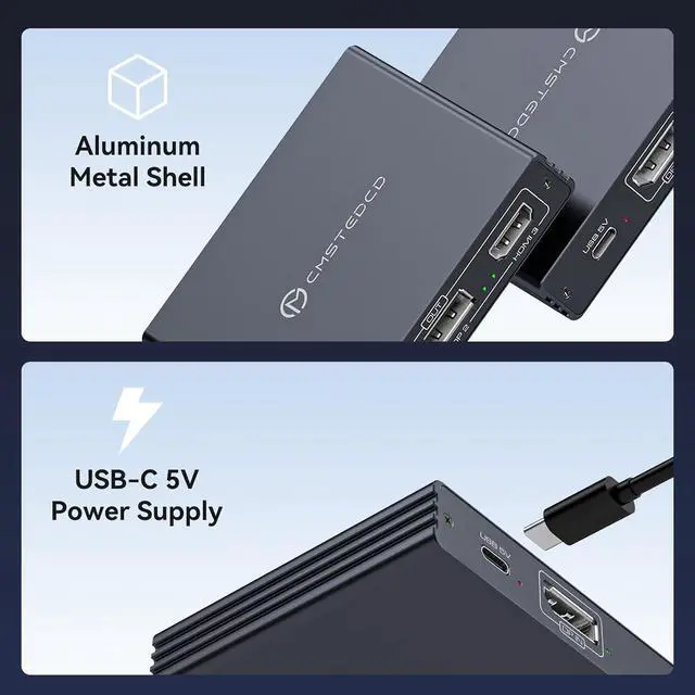 Connection Length: The Displayport Monirtor Splitter input can be connected to DP cables of different lengths to meet your needs for different connection distances. It is recommended that the length of the input cable does not exceed 1.8 meters and the length of the output cable does not exceed 2 meters to ensure the stability of the video transmission. DP cable is not included in the package please prepare your own video cable for connectionEasy to