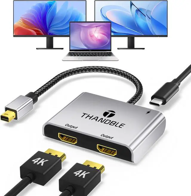 Dual 4K@60Hz UHD OutputMini Displayport to Dual HDMI Splitter supports simultaneous 4K@60Hz ultra-high-definition output via either single or dual ports while seamlessly supporting resolutions like 2560×1440@120Hz and 1920×1080@120Hz. Equipped with HDR high dynamic range display technology it delivers rich colors and detailed contrast in video playback. Whether for professional creation high-definition media or large-scale gaming it ensures smooth and immersive performanceWide CompatibilityThis Mini DisplayPort to Dual HDMI adapter works seamlessly with computers graphics cards and monitors featuring Mini DisplayPort or Thunderbolt 2 ports. Designed for classic models it perfectly supports devices like MacBook Pro/Air (pre-2018) iMac (pre-2017) and Surface Pro 3/4/Book.
