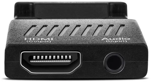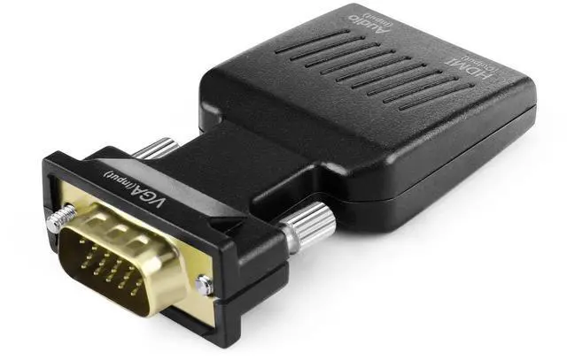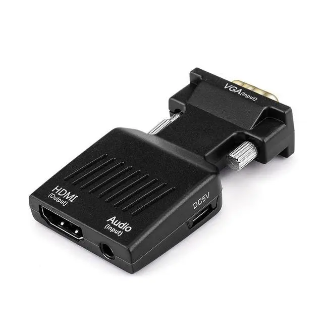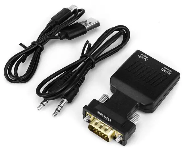Details: The mini VGA to HDMI converter is the best way to connect your computer to an HDMI television or projector. Due to its small size it can be plugged directly into your PC's VGA port for the most unobtrusive conversion possible. Never before has it been so convenient to convert a VGA video output to a digital HDMI signal. Many resolutions are supported including full HD 1080p and 1920x1200px for maximum image clarity. Not only does this HDMI converter provide an analog to digital video conversion but the 3.5mm audio port allows you to integrate audio into the HDMI signal. High-precision conversion ensures that no transmission loss occurs. Enjoy your movies photos games and more in clear detail on your big screen!