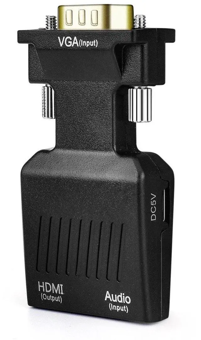- VGA to HDMI converter converts PC VGA and audio to HDMI; Transfer VGA video and 3.5mm AUX stereo audio from compatible device such as PC desktop laptop to a monitor projector AV receiver with HDMI port. With this converter box you can enjoy HD video in large screen