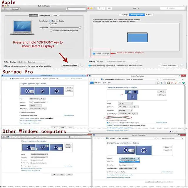 • ENJOY GREAT DISPLAY: HDMI/DVI port support displays up to 3840x2160@30Hz (4K). Please use a HDMI 2.0 cable in order to enjoy the 4K resolution.VGA port support displays up to 1920*1200@60Hz,Therefore, mini displayport adapter is ideal for your office, home entertainment display, conference rooms, trade shows, and more.