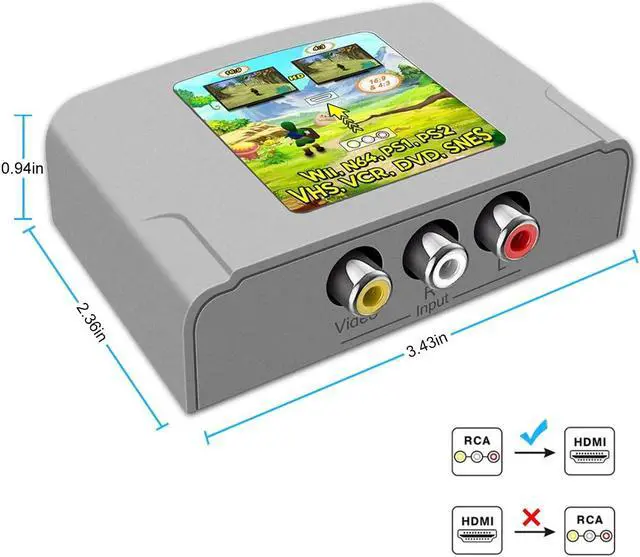 ??Key Point: Choose the 4:3 / 16:9 switch as you need. Support HDMI 1080P output (60HZ). ??Plug and play, no need to install drivers. Power reqiured.