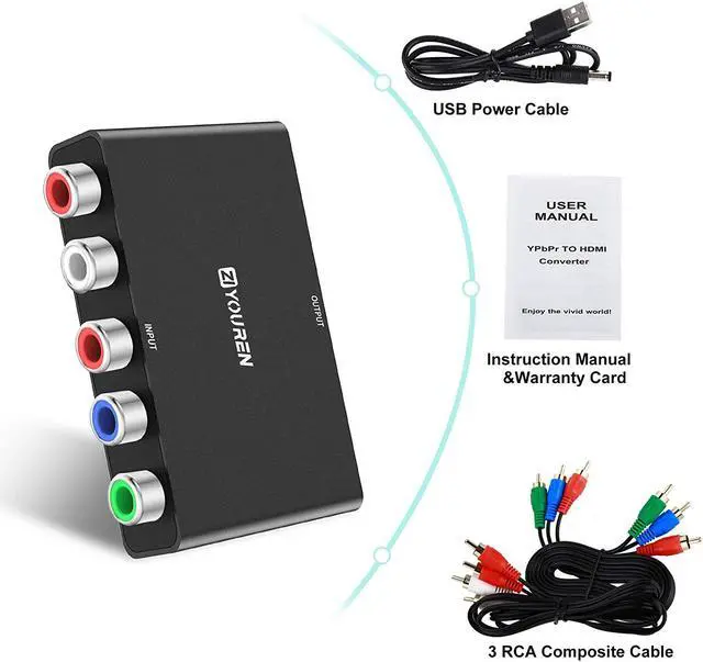 What You Get: 1 * YPbPr to HDMI Converter, 1 * YPbPr video cable, 1 * R/L audio cable, 1 * 5V DC Power cable. ONE YEAR WARRANTY Please contact us when you have any problem, we will solve the problem for you as soon as possible.