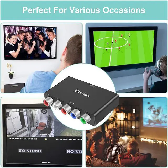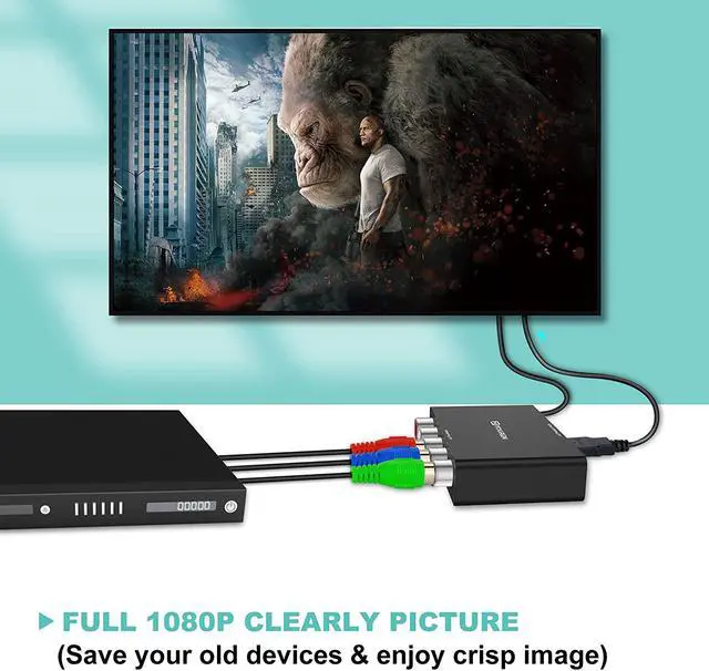 HDMI Converter: converts analog component video and R/L audio signal to digital HDMI signal, enables your old DVD player, cable box and gaming consoles to work with your fancy new television, display and projector.