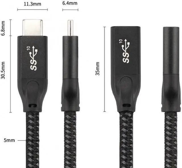USB-C USB 3.1 Type C Male to Female Extension Data Cable for Macbook Tablet With sleeve, Reversible plug orientation Cable direction Support Scalable power charging for Macbook Tablet Mobile Phone Hard Disk Drive