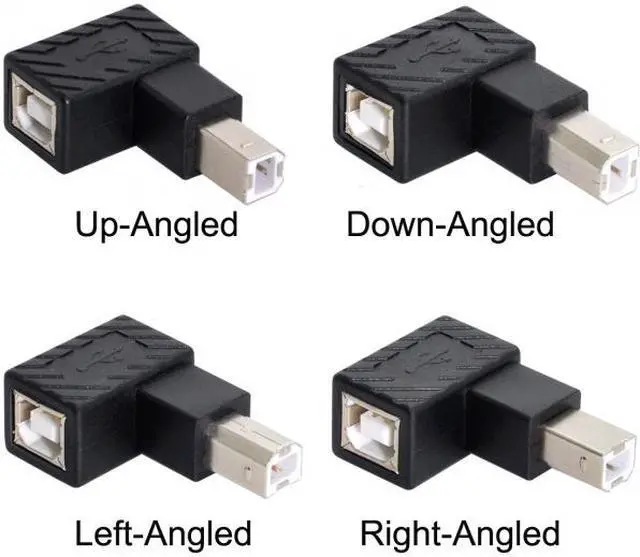 4Pcs USB 2.0 B Type Male to Female Extension Adapter Horizontal Vertical Angled 90 Degree for Disk Scanner