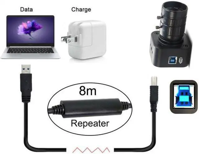 8m USB 3.0 Male to Standard B Male Chipset Repeater CableKEY_TAB for Industrial Camera & Laptop PC & Disk