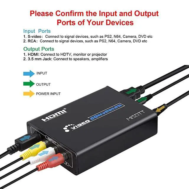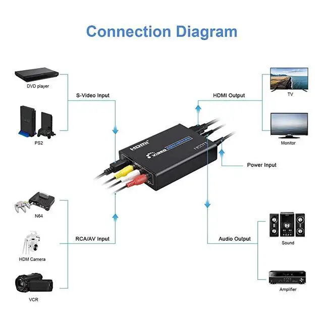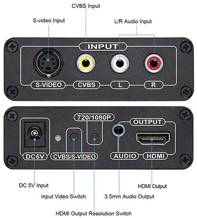 3. This converter supports 16:9 aspect ratio, does not support 4:3 aspect ratio. RCA S-video to HDMI converters converts RCA (AV, Composite, CVBS) or S-video signals into HDMI signals so you can watch your video on a modern TV with HDMI input ports.