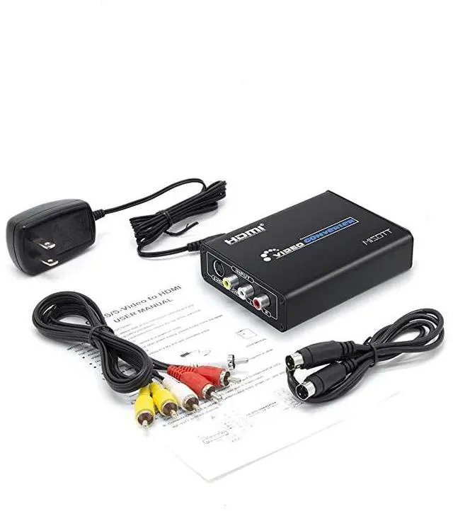 Package Contents: 1. RCA & S-video to HDMI Converter x 1 2. AC Power Adapter x 1 3. S-Video Cable x 1 4. 3RCA Cable x 1