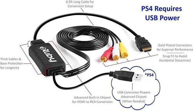 **Features: Built in to RCA Converter Chipset for ConvenienceHigh Quality Cable and Converter for High Performance and Long LifeCompatible with All Your /RCA