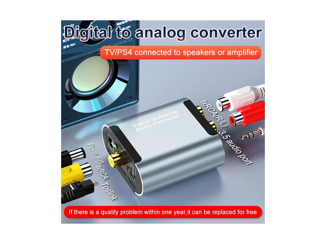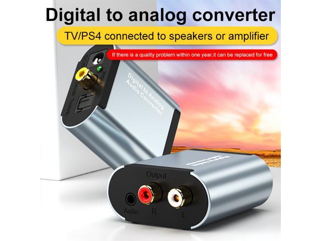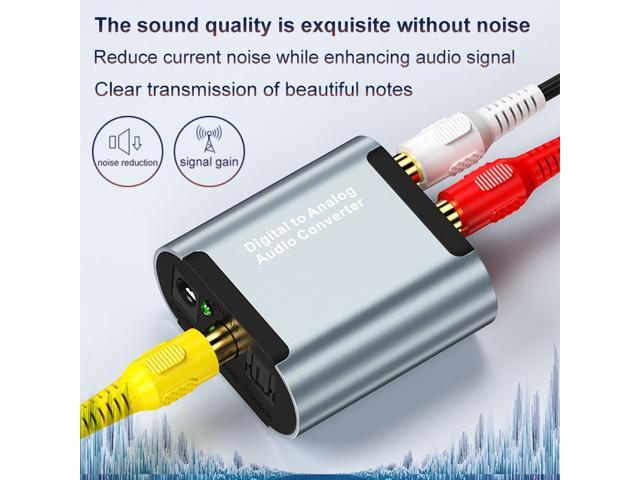 Converts Coaxial or Toslink digital audio signals to analog L/R audio