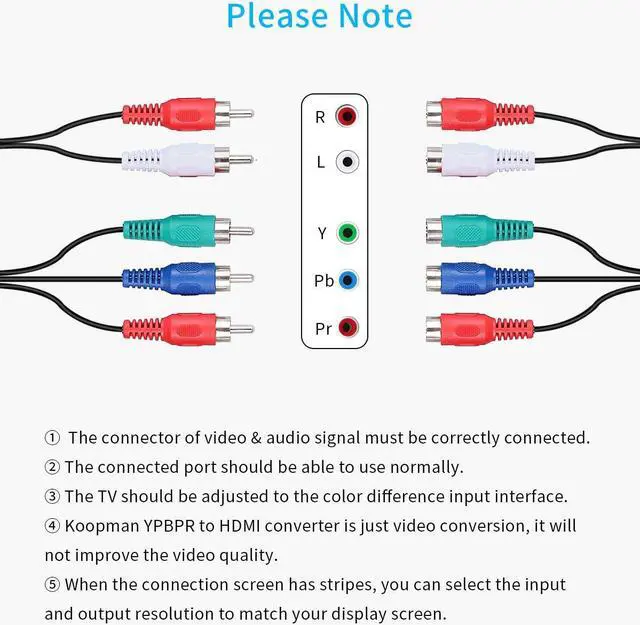 ??Component (input) to HDMI (output) Converter??Koopman YPbPr to HDMI adapter converts analog component video and R/L audio signal to digital HDMI signal, enables your old DVD player, cable box and gaming consoles to work with your fancy new television, display and projector.