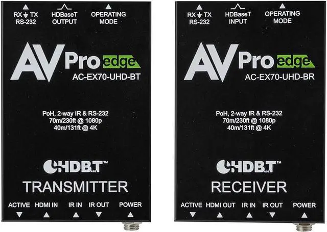 The AC-EX70-UHD-BKT is the basic 4K extender kit from AVPro Edge. You are able to pass 1080p HDMI signals 70 meters and 4K HDMI signal 40 meters all over readily available CAT-6a cable using HDBaseT technology. This product is the ideal solutions when you need a stable 4K HDMI signal distributed long distances. It solves problems for both commercial and residential markets for distributing high value 4K UHD content from rack to display. ? This is the basic extender kit from AVPro Edge, it?s has limited HDR and Dolby support. If you are wanting an extender that handles these more advanced signals, please look into the ?444? line of extender products, or our top selling extender the?AC-EX70-UHD-KIT.