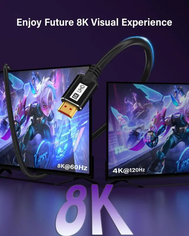 ARC DTS Master DTS: X Dol by TrueHD Dol by Vision Dol by Atmos etc. Enhance Viewing Experience The 8K HDMI cable enhances your viewing experience through advanced technologies such as SBTM Variable Refresh Rate (VRR) Quick Media Switching (QMS) and Automatic Low Latency Mode (ALLM). Say goodbye to screen tearing and lagging. Customer Support If you have any questions or concerns please feel free to contact our top customer support team we provide 18 months of after-sales service guarantee