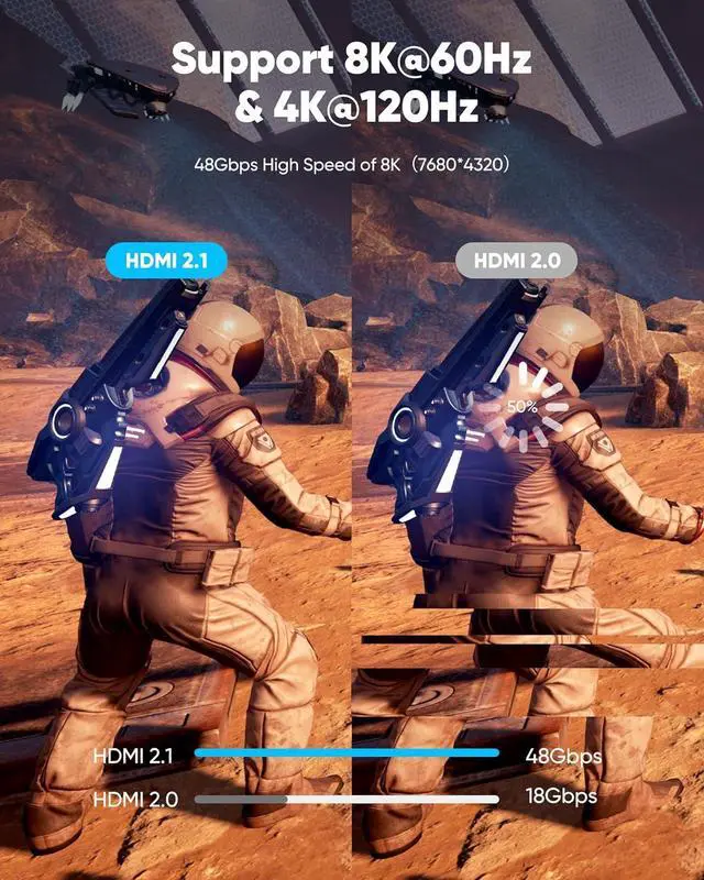 Top Technology----8K@60HZ: This 8K Ultra High Speed HDMI Cable uses the most cutting-edge technology is compatible with 8K@60HZ and 4K@120HZ clearly displays every particle and accurately processes every signal sourceUpgrade