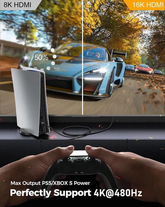 Design For Game Enthusiasts: This 16K Ultra High Speed HDMI Cable can achieve a super smooth picture of 4K@480HZ and 8K@240Hz. Its latest game mode supports variable refresh rate maximizes the value of the graphics card and CPU elevate gaming experience to a whole new levelUpgrade