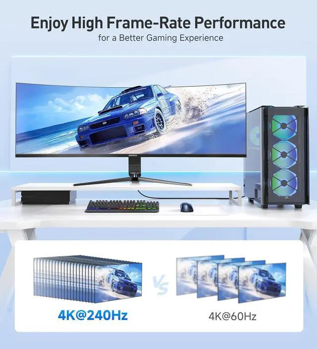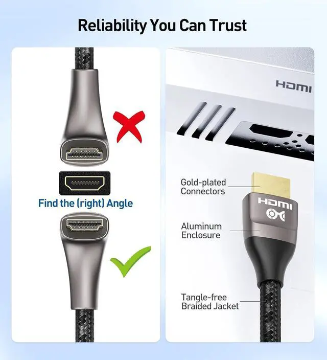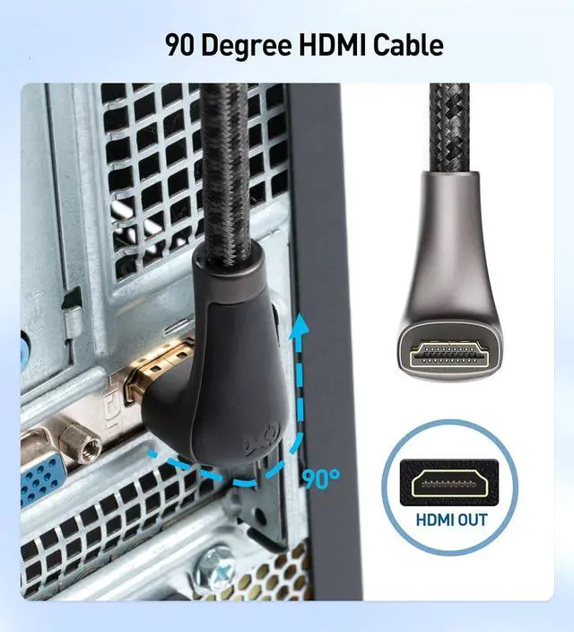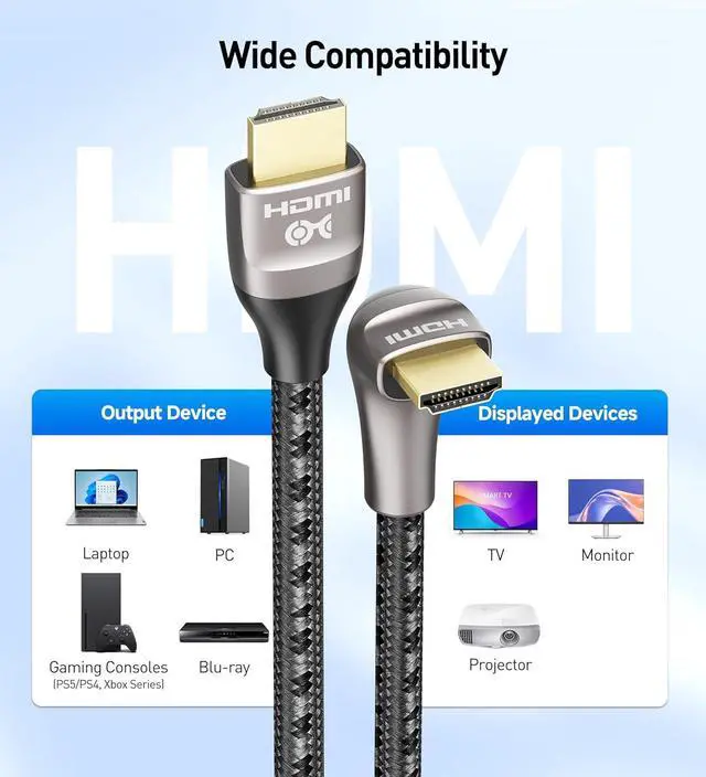 Unleash the full potential of 8K with the Cable Matters 8K HDMI Cable; Cable supports high bandwidth HDR with a 48 Gbps bandwidth as specified in HDMI 2.1 standard with more than 2x bandwidth compared to HDMI 2.0 HDMI 2.0 b and 4K HDMI cablesRight-angle connector of the HDMI cable 8K is the perfect fit for wall-mounted television or devices in entertainment centers; Right angle HDMI cable reduces the stress placed on the HDMI connector; Braided 8K HDMI cable features a braided cable jacket for tangle and fray protection and premium metal connectors and gold-plated contacts provide unmatched durabilityHigh speed HDMI video resolution support up to 8K (7680x4320) including HDMI 2.0 a cable 4K Ultra HD HDR resolutions with the 8K HDMI to HDMI cable; Hear immersive audio for surround sound 7.1 and 5.1 channels including Dolby Atmos and DTS X with this feature filled HDMI monitor cableGaming 8K HDMI cable supports popular devices such as the PS4 Pro Xbox One and TV 4K with advanced features; 8K HDMI cable is the perfect companion for the Xbox Series X 8K and PlayStation 5 8K; 8K gaming cable supports 8K video on the Nvidia RTX 3090 and Nvidia RTX 3080 graphics cardsConnect with confidence with this HDMI cable with full HDMI feature support for the latest video audio and gaming features on your TV or monitor; Enjoy 4K streaming video with this Dolby Vision 4K HDMI cable; HDMI 4K 60Hz cable is backward compatible with HDMI 2.0 cable and supports 4:4: 4 RGB HDR 12-bit color and Dolby Vision; Fully compatible with HDMI ARC (Audio Return Channel) features for immersive audio even through an A/V Receiver