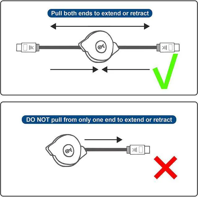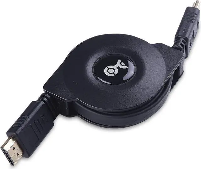 Tangle-free HDMI cord connects a computer media streamer or Blu-ray player to an HDTV monitor or projector with HDMI; Simply pull on both ends of the cable to unwind to the ideal length and then pull the ends again to rewindRetractable HDMI smooth ribbon cable retracts from 43 inches to 3 inches for tossing in your laptop bag; Provides connectivity on the road in a conference room classroom hotel room or an RV4Kx2K video support for resolutions up to 4Kx2K (UHD) including 4096x2160 3840x2160 2560x1600 2560x1440 1920x1200 and 1080pHigh speed HDMI wire with Ethernet supports Audio Return Channel (ARC) HDMI Ethernet Channel (HEC) 48 Bit Deep Color 32 channel audio Dolby True HD 7.1 audio and 3D video; HDCP support for viewing content protected videoSmall and sturdy travel companion A/V cable weighs only a few ounces; cable management reel folds into a 3-inch spool for easy transport and storage; Molded connectors have easy-grip treads and strain relief for frequent use and long life