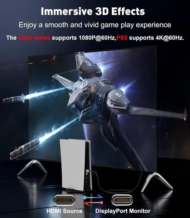 DDC/CI)Wide Compatibility: HDMI to Display Port cable supports everything from connecting a video source from the HDMI port to the DP port for display compatible with PCs desktops graphics cards laptops AMD NVIDIA Raspberry Pi MacBook Pro ps5/4/3 Xbox One/360 and other devices with HDMI output port (