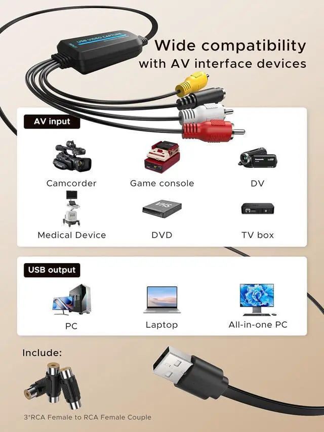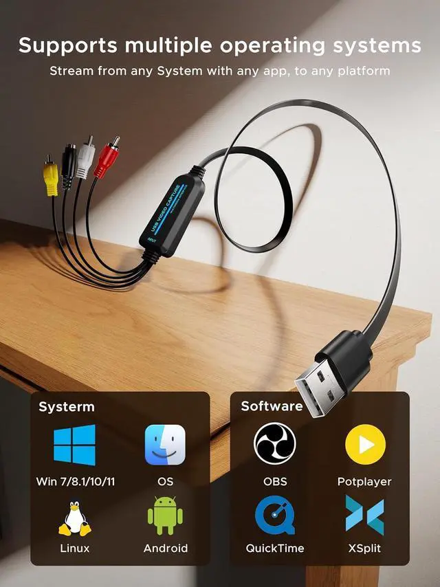 Wide Compatibility: Compatible with Windows and MacOS operating systems and supports video capture software such as OBS Potplayer etc. this RCA-USB capture card is ideal for video production screen recording and other scenarios.