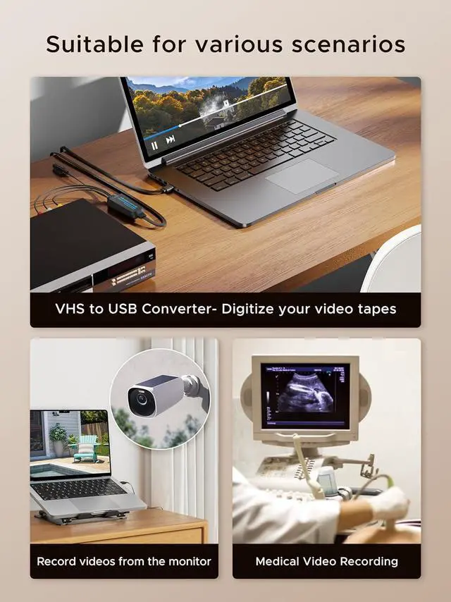 (Note: No image is displayed when the AV capture card is connected without third-party software. )Plug & Play Multi-Use Compact and easy to set up no extra power supply needed. Ideal for video/audio recording live streaming online teaching medical imaging and more. Important Note & Support This device requires composite RCA or S-Video signal input. If using a SCART adapter make sure it supports signal output (OUT) otherwise no video will be captured.
